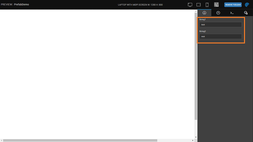 The preview option on Prefab allows you to test your Prefab. The following options are available from the Preview screen: