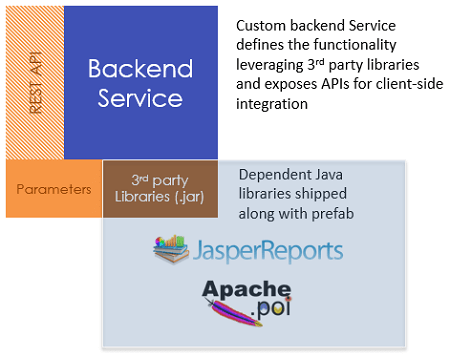 3. as Backend service extensions: reusable backend services can be built by leveraging 3rd party Java libraries. prefab_backent