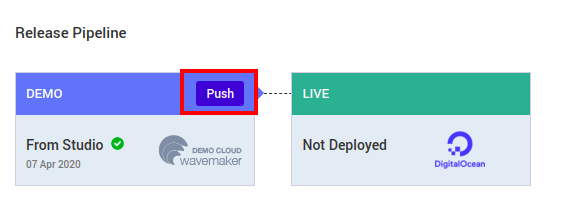 Once the live phase configuration is completed, you can trigger the deployment to DigitalOcean cluster by clicking Push option in the Demo phase.