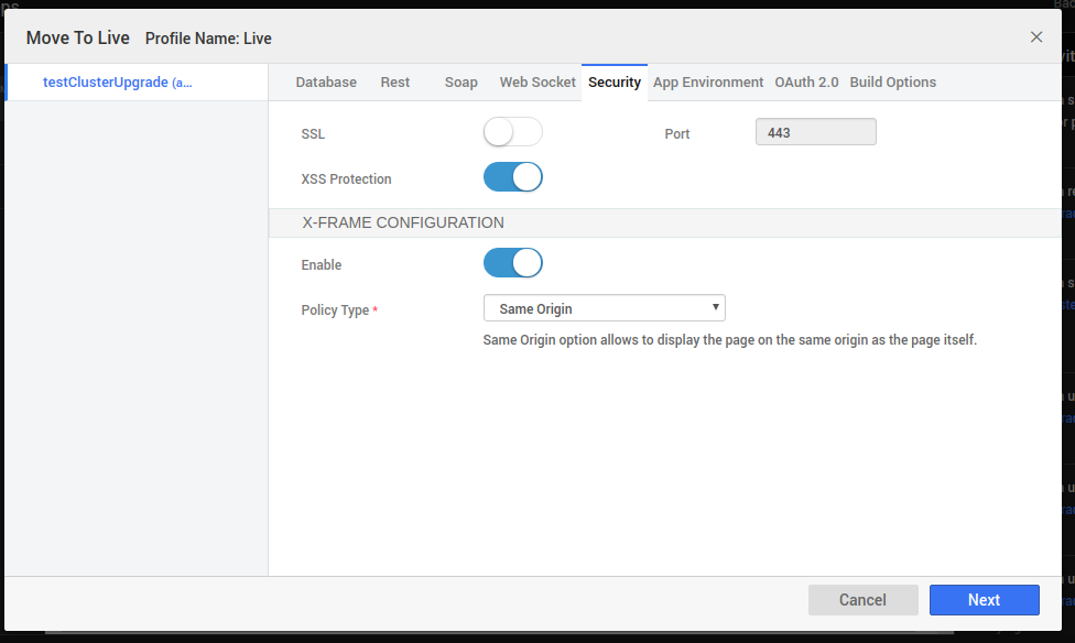 On clicking the Configure button, for existing cluster, the Live phase is associated with already chosen cluster details.