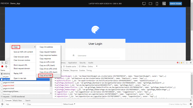 Sometimes, in order to debug a problem WaveMaker support team may ask you to send the HAR file. To obtain the HAR file: