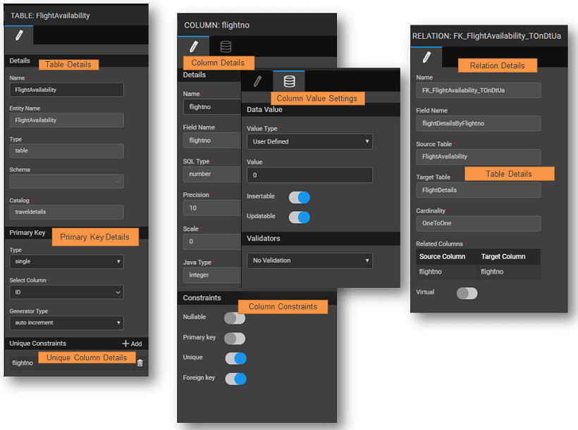 - If you select Insertable option alone, the column value will be inserted only at the time of creating a new record. The inserted value will not be updated at any point of time if the Updatable option is unchecked.