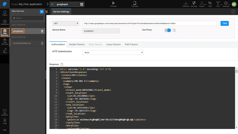 For Mobile Applications, there is no option to configure proxy settings. By default, the request made to the target REST service will be a direct hit. However, while testing the service in the WaveMaker, a direct call is made. If a CORS failure is encountered, then the call is made through proxy behind the scenes and the service is imported with the proxy as true for WEB. In the mobile app, however, the call will be a direct one.