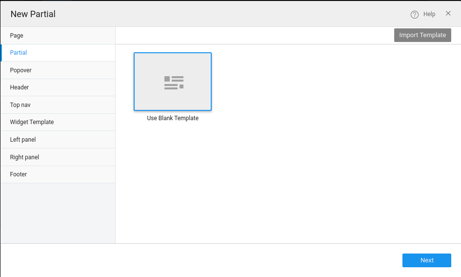 • In allowing us to select a partial for a component/widget. For example, a left panel can include only partial of type leftnav.