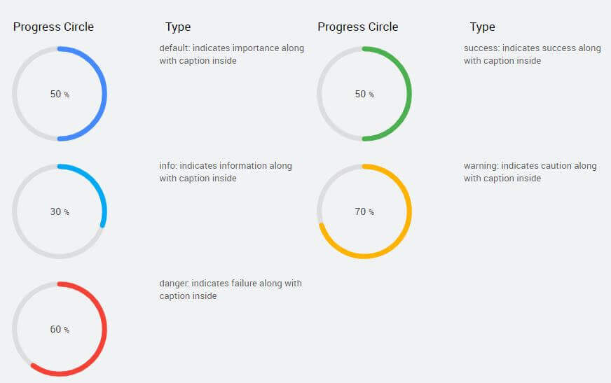 TypeIndicates the format you want to use to display the progress circle. Choose from - default, - success, - info, - warning, - danger,