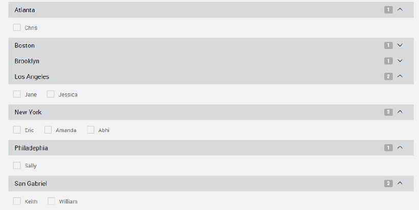 Group byThis property allows for grouping the items in the variable bound to the checkboxset dataset by selecting one of the field names from the drop-down list.