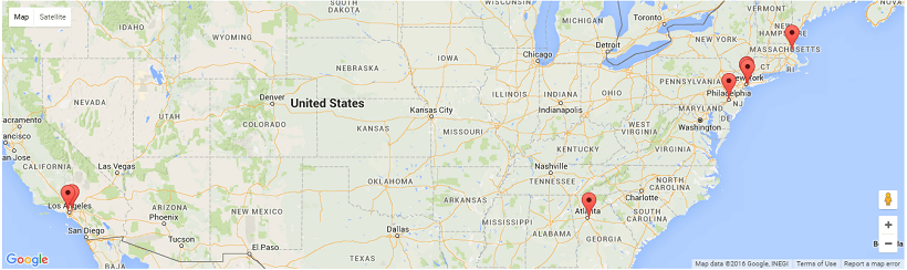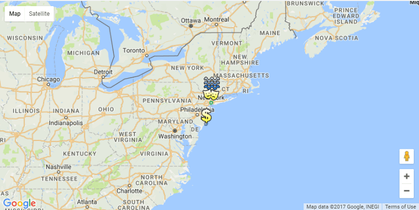 - You will see the google map displayed with the cities mentioned in the static variable highlighted with the appropriate icon and information tags. You can zoom in, zoom out, pan left, right, top and bottom as you would with google maps.