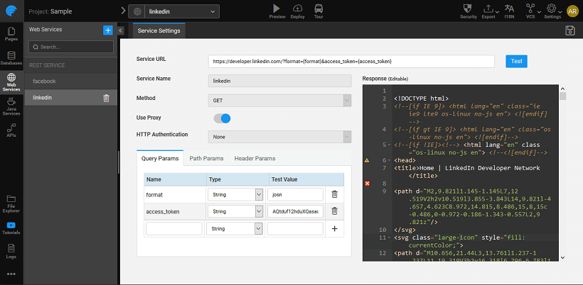 13. From WaveMaker app designer, import a web service with the proper credentials as obtained from the above step. ld_testurl