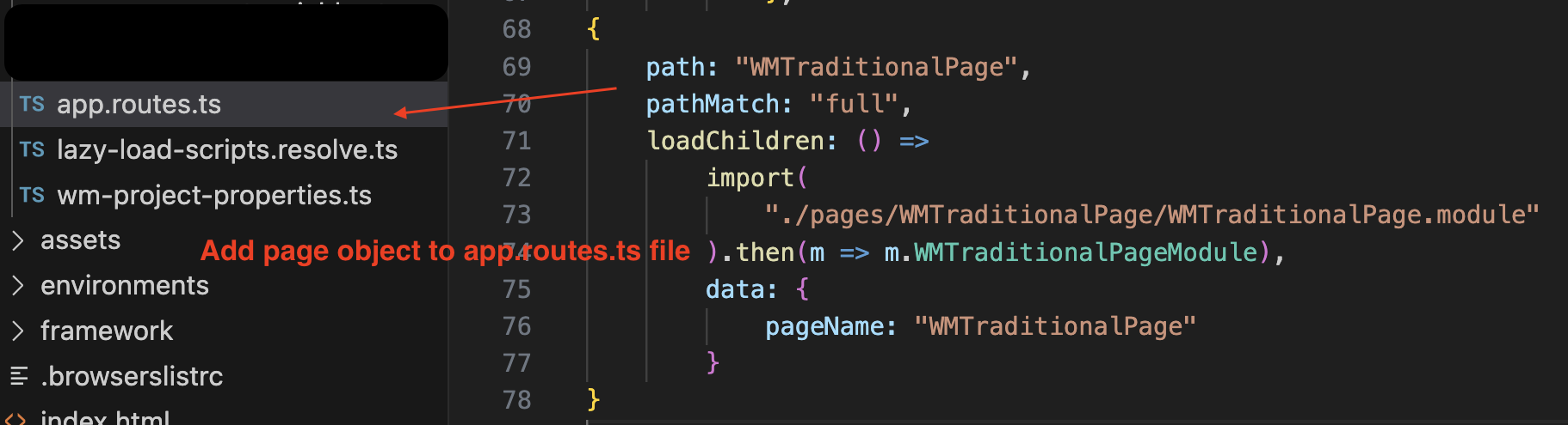 Add the new component to app-routes.ts.