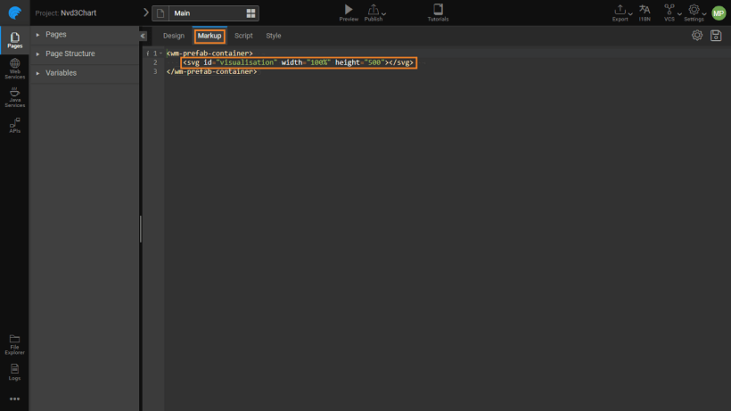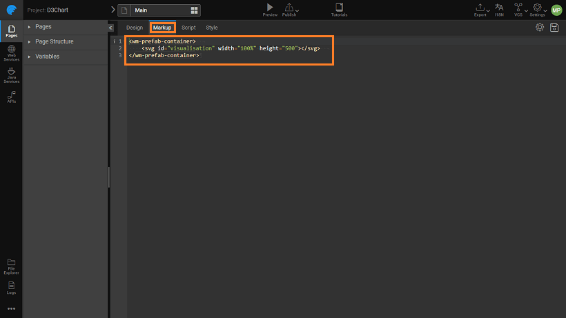 • Enter the following code (you can copy and paste the same). This code is to set up the visual rendering of D3 chart.