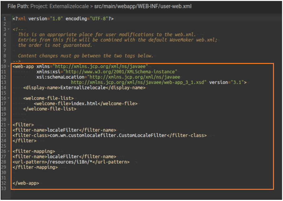 For example, create a file for the Filter class named CustomLocaleFilter.java