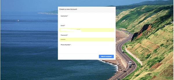 1. On running the application, the Registration Page shows up. This page allows you to create a user who will be added to the user pool created.