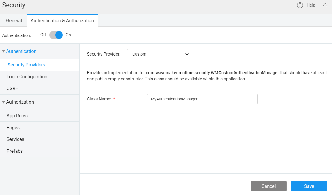1. Create a Java Service MyAuthenticationManager by implementing a WMCustomAuthenticationManager interface.