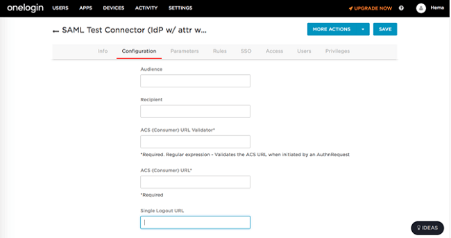 2. Copy the Audience URL from the Security Provider Info and paste it in the Recipient, ACS Consumer URL Validator and ACS Consumer URL in One Login Configuration as shown above.