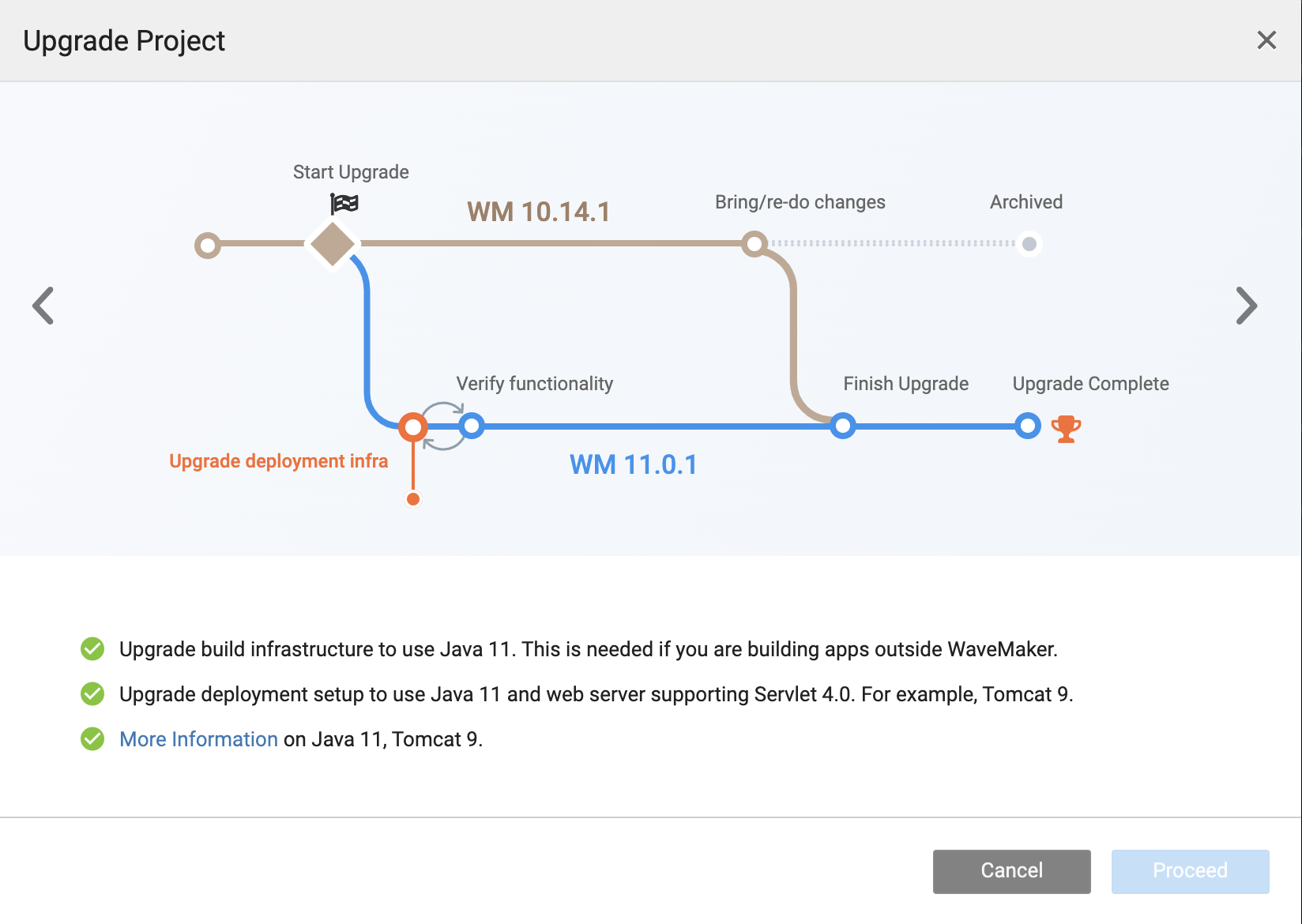 If you are in the middle of migrating a project from WaveMaker 10 to WaveMaker 11.x version, see Ending Support for WaveMaker 10 projects.