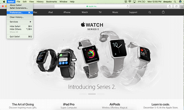 • Open Safari browser > preferences