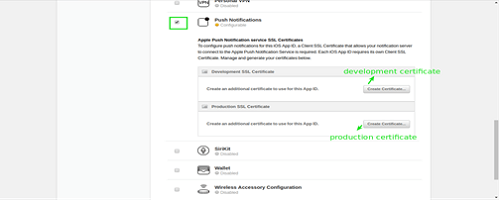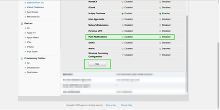 3. If you have not already created an App ID, create it now and make sure push notifications is enabled. Or edit your existing App ID and enable them.