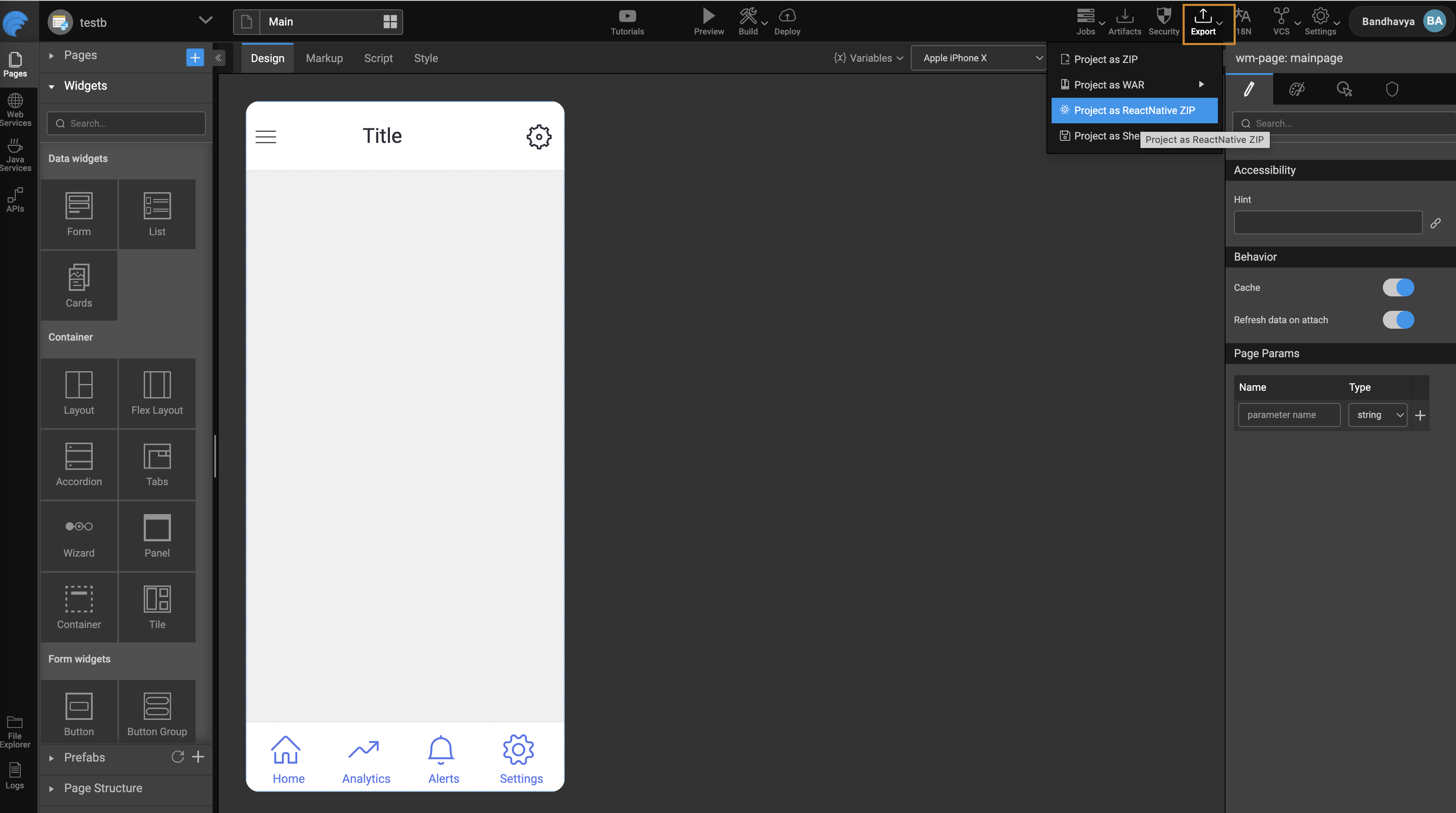 Export ReactNative Zip using WaveMaker Studio