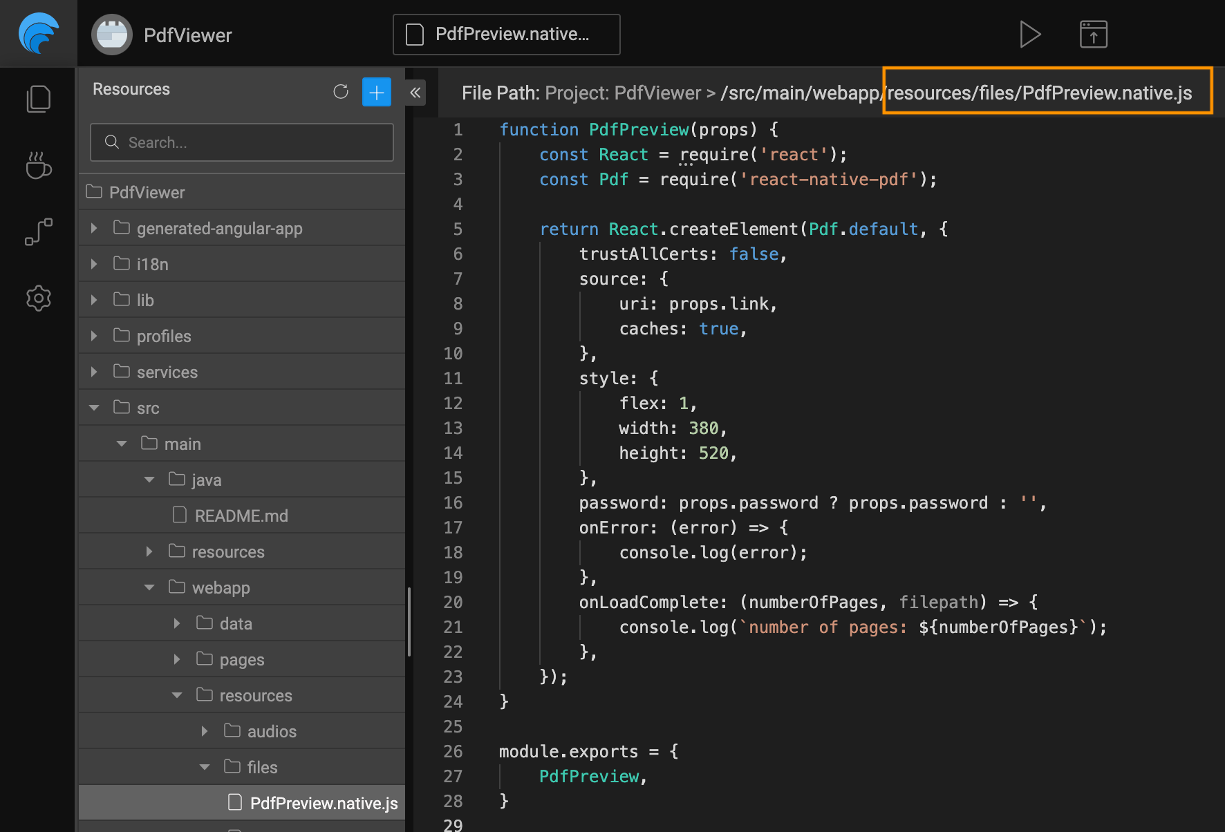 1. Add a custom file, for the native implementation of PdfPreview, e.g, PdfPreview.native.js