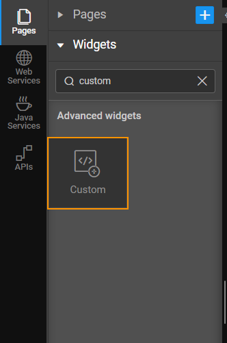 1. Go to Widget in the sidebar and search for the Custom widget. Drag and drop it on the Design screen.